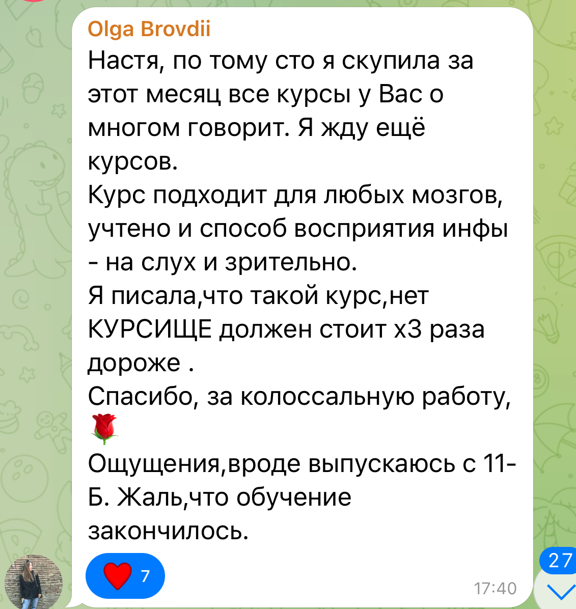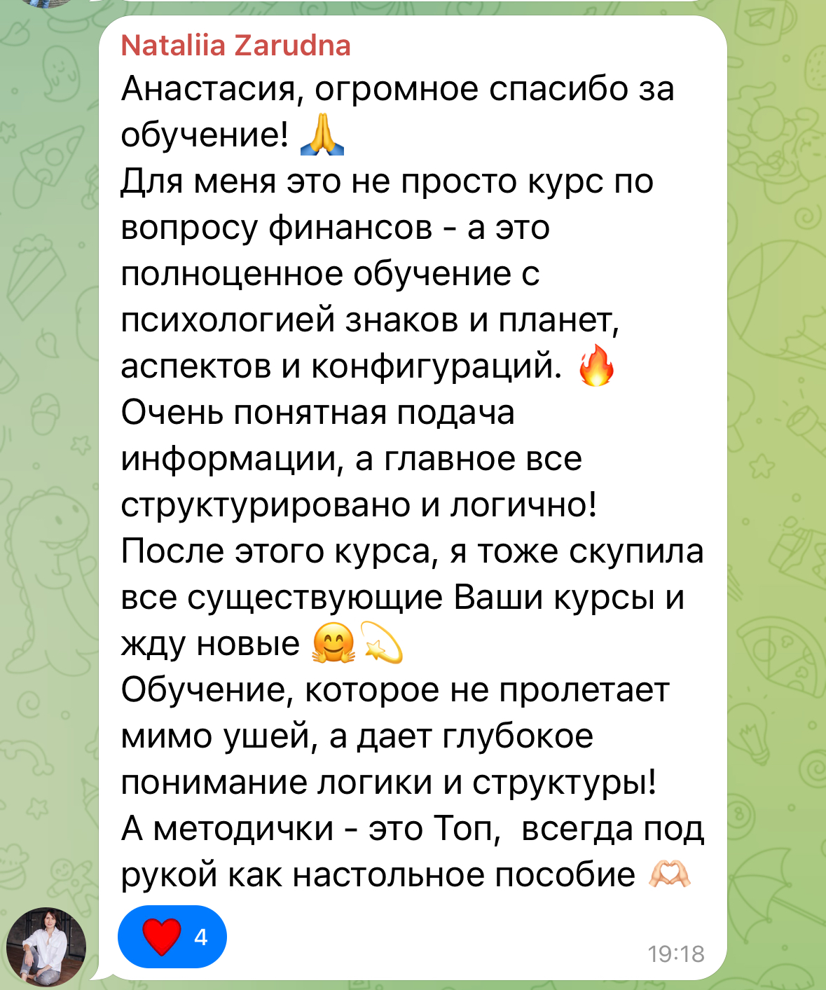 Після моїх курсів дівчата нарешті починають консультувати і заробляти. І саме це моя мета.