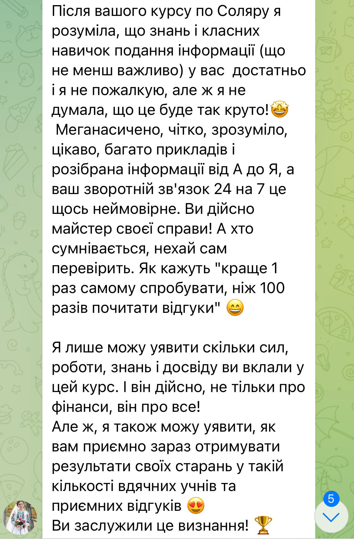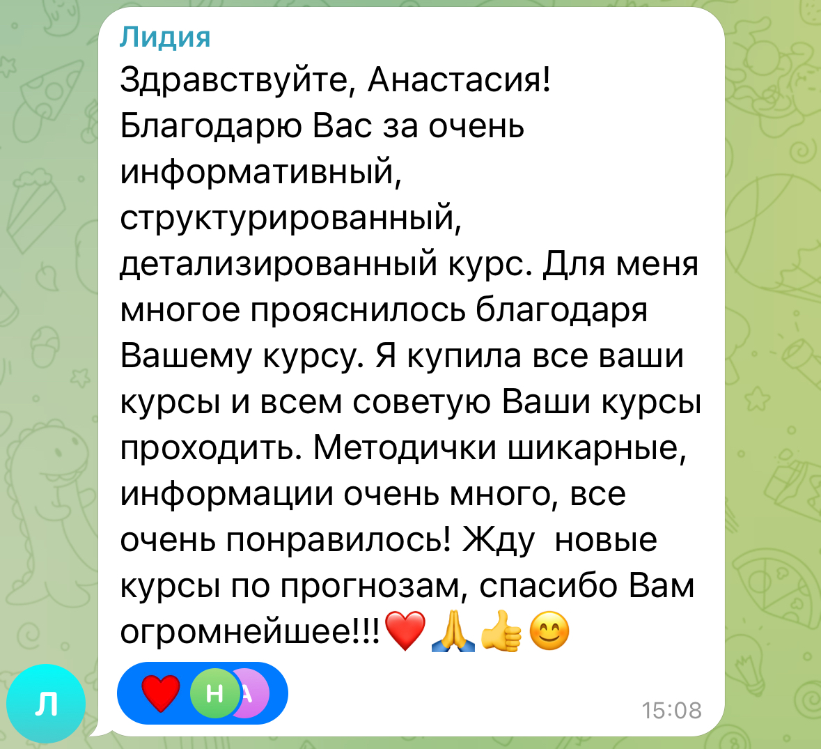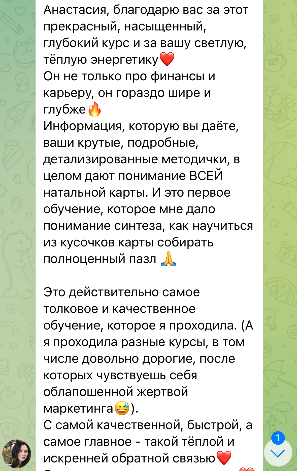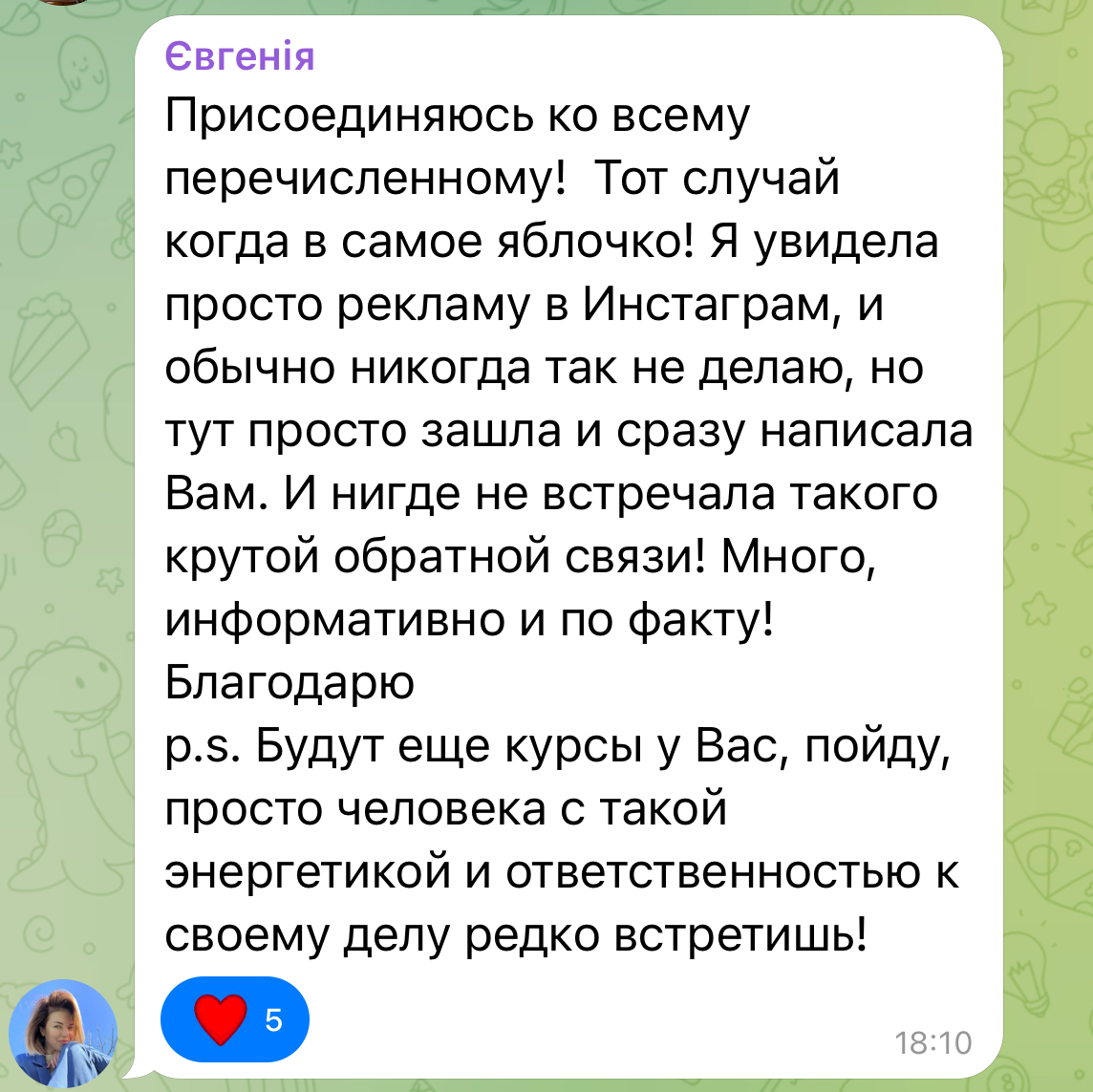 Для отримання доступу до навчання скрін квитанції про оплату надішліть мені в телеграм